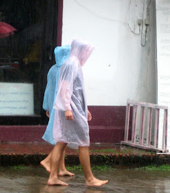 It started to rain the evening that I arrived in Luang Prabang and hasn't stopped since, 36 hours and counting. It is not your European drizzle or New Zealand squalls but torrential monsoon rain all day longs as if someone has opened up a fire hydrant and aimed it at the city.